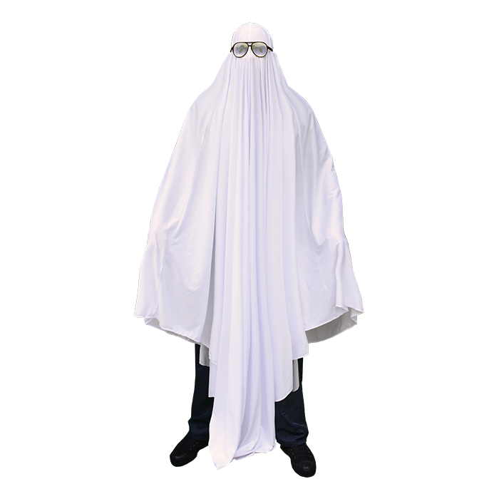 This costume includes a perfectly draped Ghost Sheet with reinforced eyes cuts that lineup perfectly with the wearers eye, as well as glasses that are just like the glasses worn by Bob. In addition, the glasses include a glasses cord that attaches ensuring the glasses stay firmly attached to the wearers head.