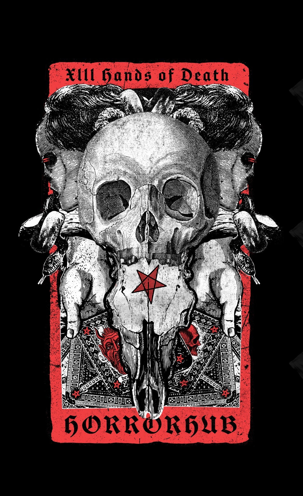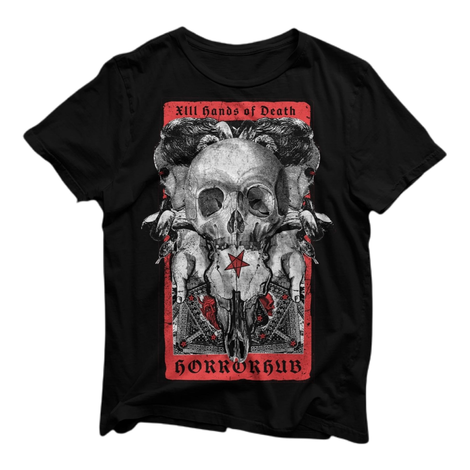 The Hand of Death art on the front is original, dark and beautiful. Grab this one of a kind horror collectible shirt before it sells out.