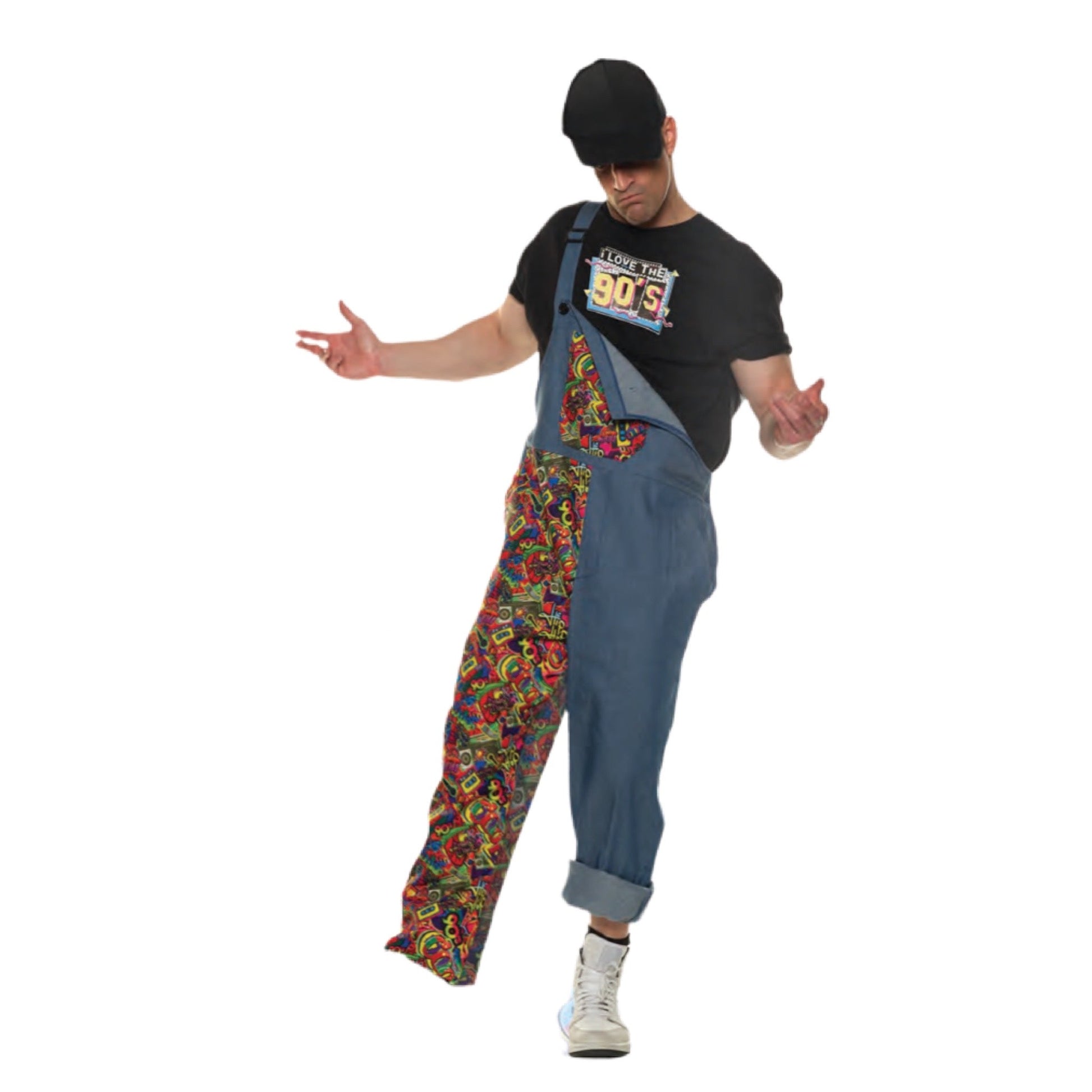 Button front overalls with detailed print embellishment
